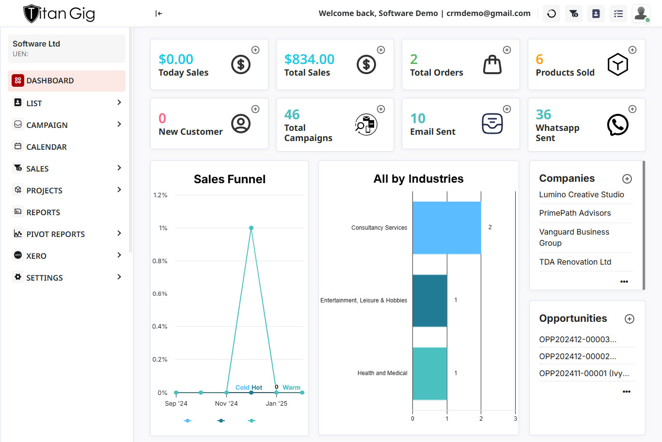 SMEs rely on strong customer relationships to grow. TitanGig CRM helps keep all leads, clients, and communications in one place, making follow-ups faster and sales easier to manage. It cuts down admin work so teams can focus on service and business growth.