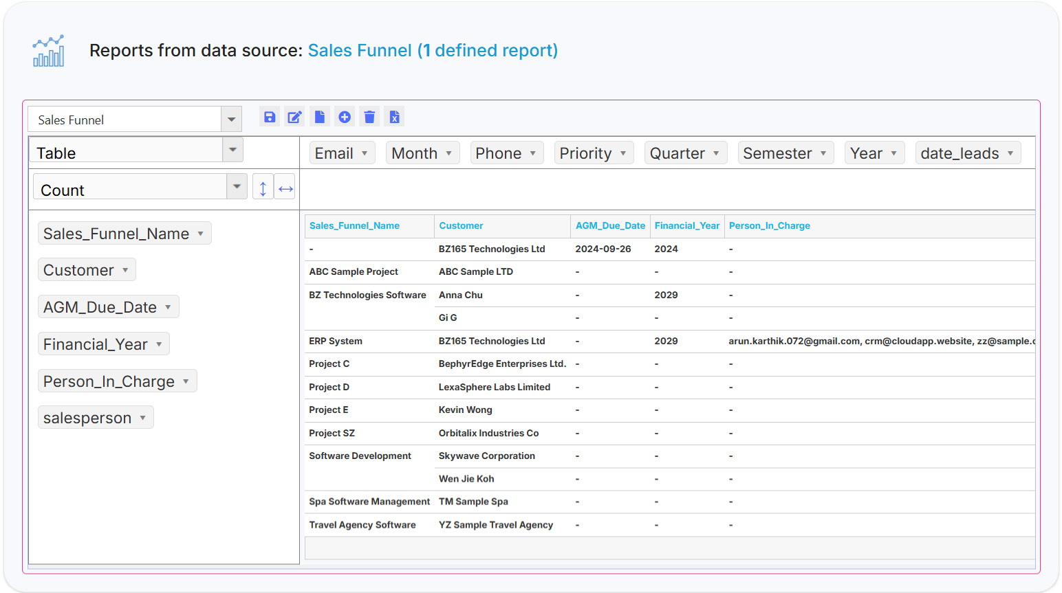• Generate reports on a range of metrics, including sales, customer retention, and pipeline status, to gain deeper insights.